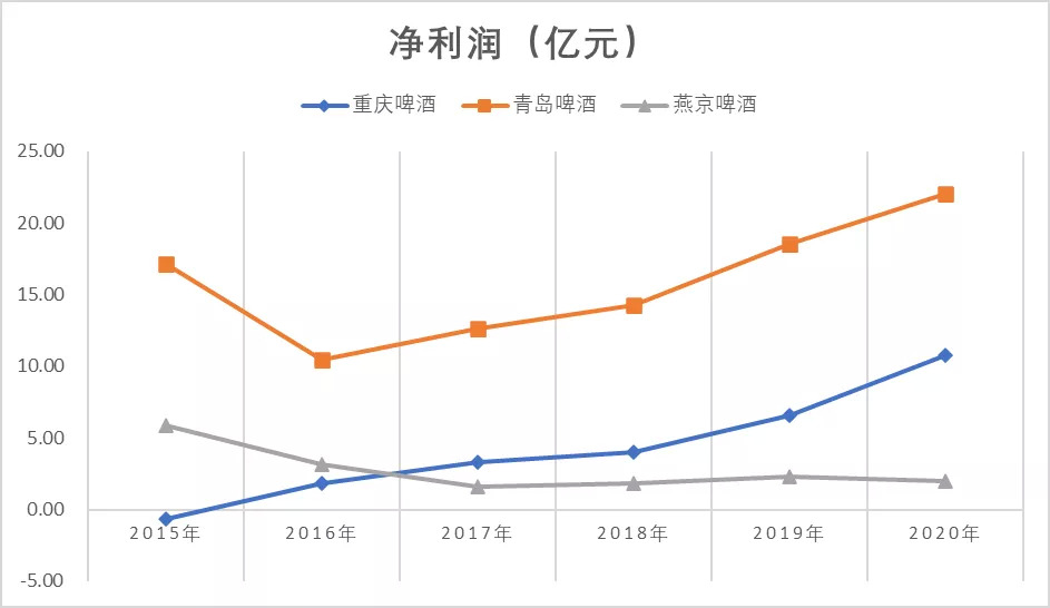 相比之下,青岛啤酒营收最近6年基本维持在260亿元-280亿元之间,但2020年净利润已经是2016年的2倍有余。重庆啤酒在嘉士伯等资产注入前,业绩也有明显增长,其2019年净利润相比2016年增长了近3倍。