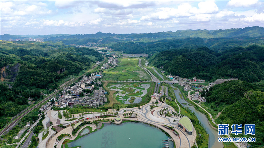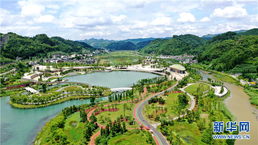 图为7月9日航拍的毕节市织金县凤凰生态公园一景。新华网 周远钢 摄