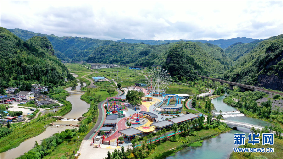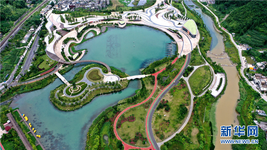 图为7月9日航拍的毕节市织金县凤凰生态公园一景。