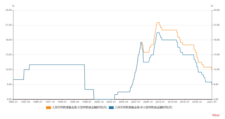 1985年至今央行存款准备金率变化趋势