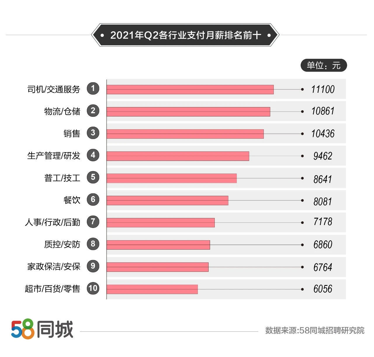 报告指出,2021年二季度招聘活跃职位中,司机/交通服务类职位企业支付薪资最高,平均支付薪资11100元;物流/仓储和销售类职位支付薪资次之,月资均在10000元以上;生产管理/研发类支付薪资环比增长最高,增长18.27%,达到9462元。