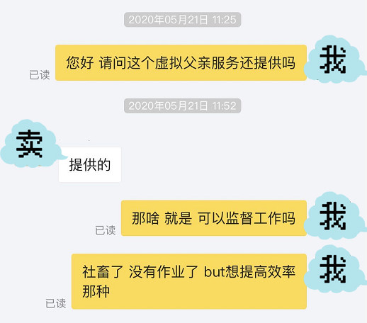 比如闲鱼上曾流行过“代喝奶茶”和“代吃火锅”的服务,卖点在于买家不用花时间排队、也不用发胖就可以体会到大吃大喝的快感;还有“虚拟父亲”等服务,卖家扮演“老父亲”的角色关怀买家、适时地鞭策买家,不少人晒出的与“虚拟父亲”的对话中,你甚至能从占了便宜的冷幽默里读出一丝语重心长。在冬天还曾经流行过“雪地代写字”的服务——购买这种服务的大多是对雪有点情怀的南方人,而卖家发来的雪地写字照片则是南方人在冬季的朋友圈社交货币。