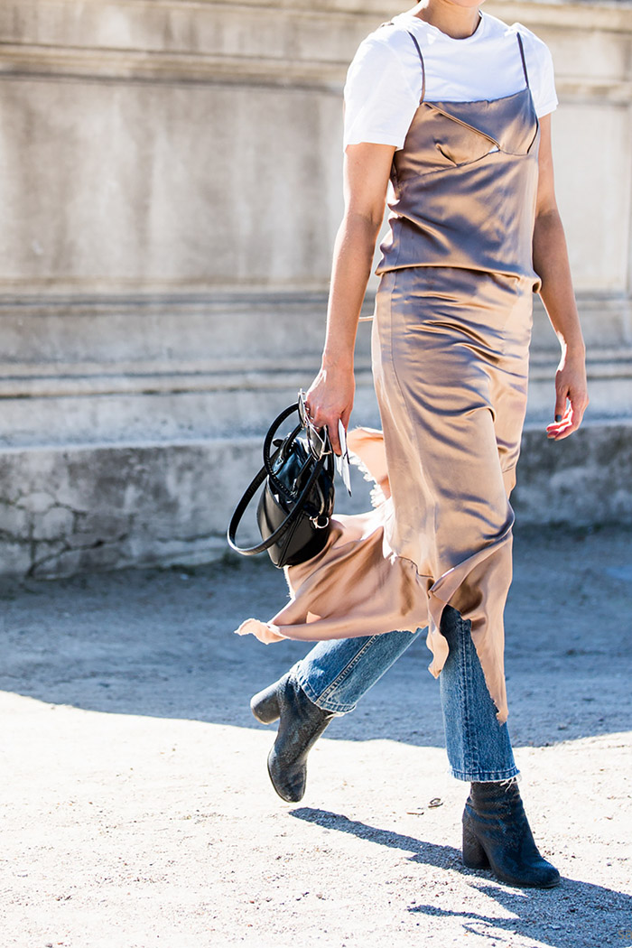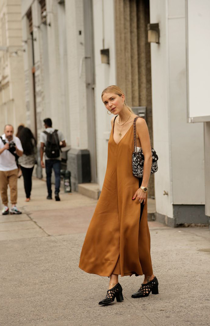自 Vogue 给出以下示范后,2016年的吊带叠穿潮流就开始了。与传统的睡裙不一样,这种内搭短袖和直筒裤的方式显得更高级,却又不中性。当然,它也可以拯救许多吊带裙不能给予的身材庇护。