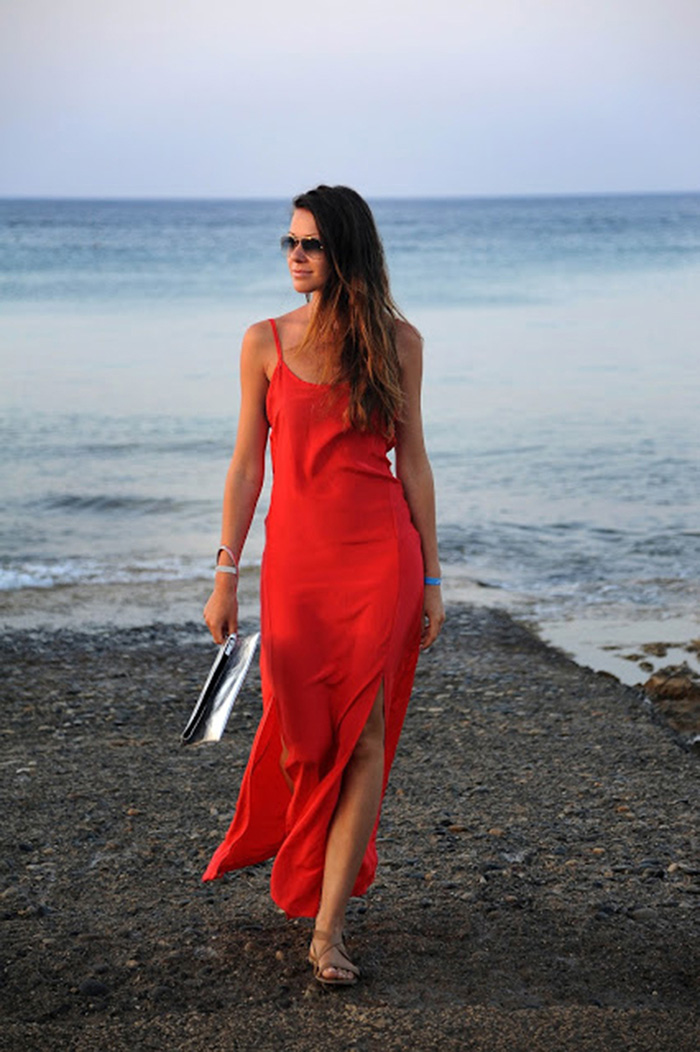 与绑带、网格和格式细高跟不同,平底鞋可以救活不少暴露裙子,踩一双适合的平底鞋,都市度假风格立马就出来了: