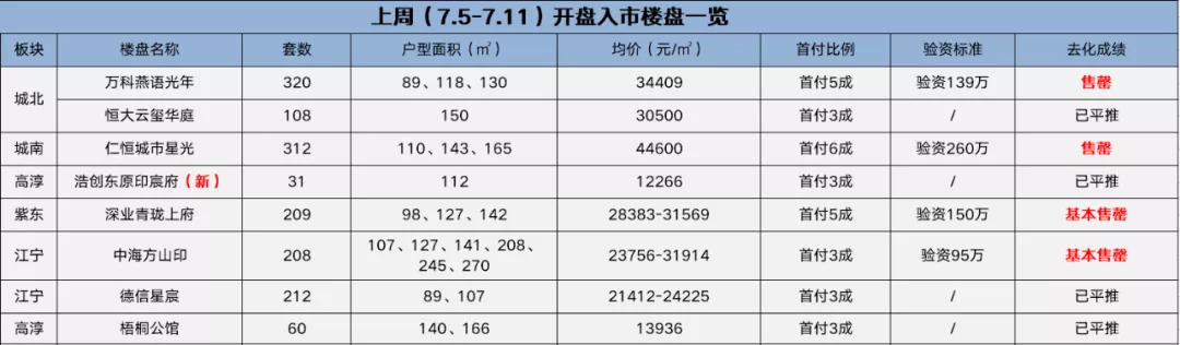 上周(7.5-7.11)南京楼市共有9盘1792套房源领取销许,共有8盘上周迎来开盘加推,共计约1460套房源已入市,其中不乏热门板块的楼市热盘,买房人上周主要集中在紫东、城南赛虹桥、城北燕子矶以及江宁新方山四个区域抢房。