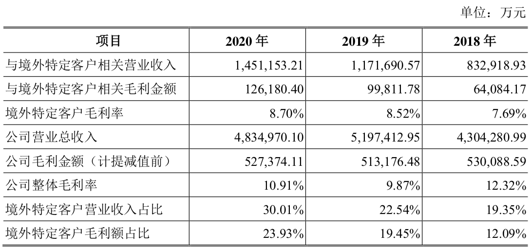数据显示,近年来欧菲光对于苹果存在较大依赖。2020年公司实现营业收入约483.5亿元,其中,第一大客户销售额为145.12亿元,占营业收入比重高达30.01%。2018年、2019年,公司与境外特定客户相关营业收入占比分别为19.35%、22.54%。