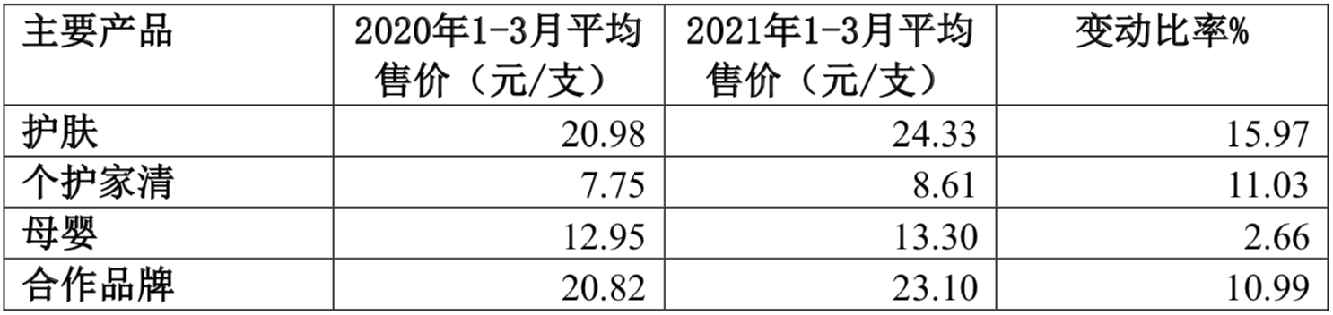 丸美表示,2021年第一季度,包装物采购平均价格较上年同期增加21%。