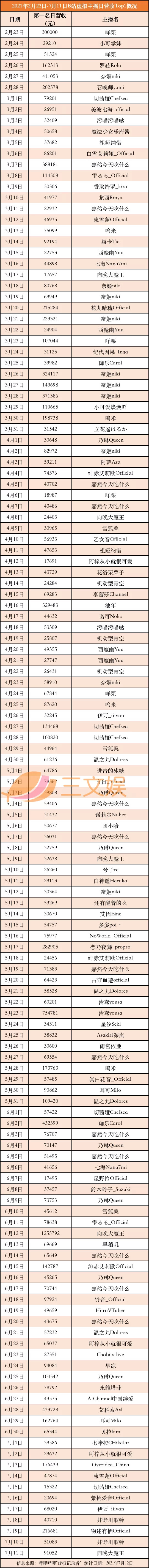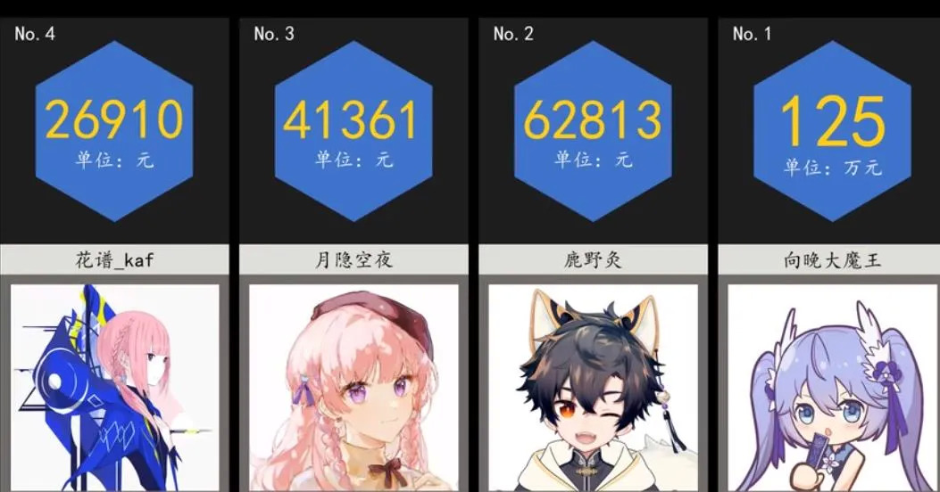 也就是说,这个排名,就是虚拟直播的打赏收入排名。