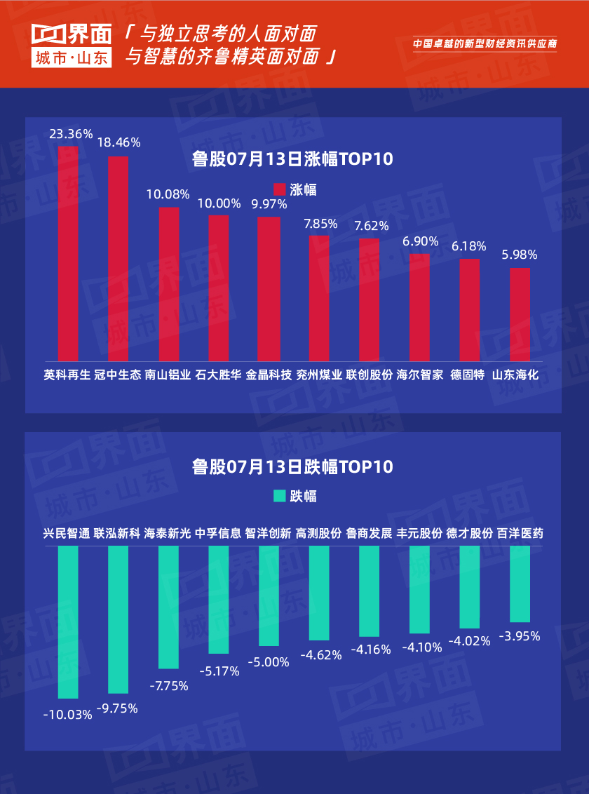 7月13日,山东136股上涨,99股下跌。