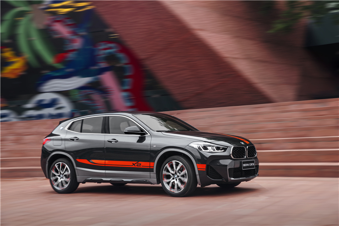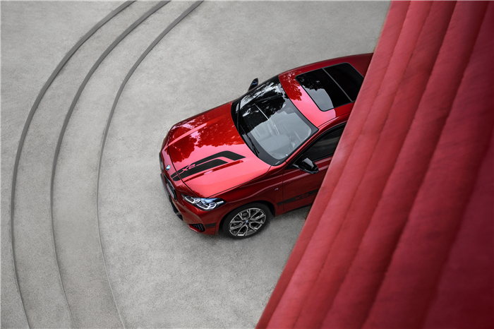 车辆外部后视镜、大灯以及尾部排气管等细节处的熏黑处理,都让这位一袭“夜行衣”装扮的X2冷峻有型。宝马X2锋芒版则搭配靓丽的橙色装扮,明丽而张扬。
