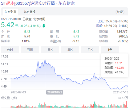 面对辛巴的离场,资本市场给出了最诚实的反应,股价多日大跌。截至7月13日,ST起步的收盘价为5.42元/股,而当初辛巴购入价是9.16元/股。粗略估算,目前辛巴账面上的浮亏已超过7000万元。