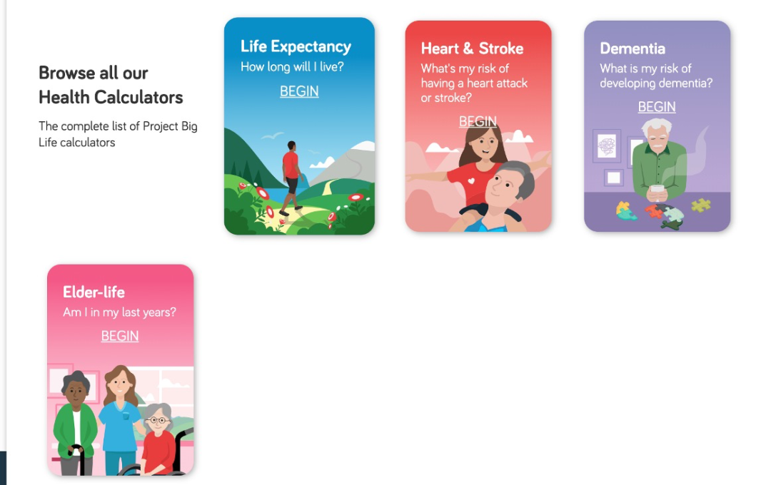 除了这项最新发布的临终寿命计算器外,由研究人员、临床医生和数据科学家等各行业专家组成的Project Big Life研究团队还曾推出过基于生活习惯的寿命预测工具、心脏和中风几的风险预测工具以及老年痴呆的风险预测工具。