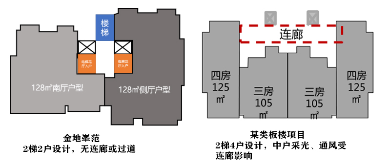 然而,搭设的连廊或采光井会对户型通风、采光与视野会造成影响,通透效果与纯板楼相去甚远。同时,连廊作为通道存在,住户可以在此走动,私密性大打折扣。