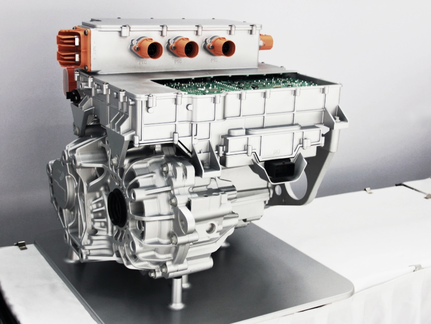 在混合动力方面,该制造商开发了一款结构新颖的HEV混动变速箱,其集成了一套特殊方案的功率分流装置——搭载两个高压电机及一个双电机控制器,可有效节油30%以上,同时具有极高的系统可靠性。此外,该系统还具备极强的扩展性。