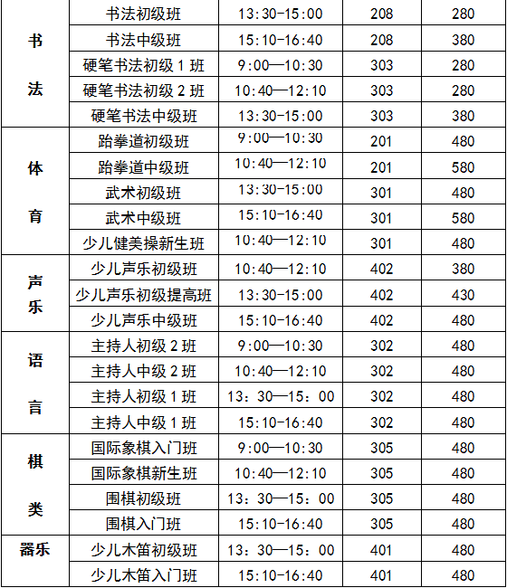 7月5日—7月23日 3周(艺术、体育、棋类等项目)