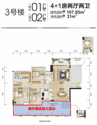 2.超高的赠送面积。大部分住宅的露台面积在12-18㎡之间,而祖龙ACMALL最高赠送30㎡超大露台,部分楼层享近百㎡大露台,是实实在在的“大露台”。拥有大露台,相当于多了一个户外花园,种植花草,布置秋千,读书养猫,给孩子营造一片自然天地。