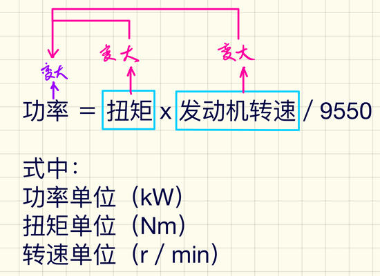 所以发动机的「功率」是通过发动机的「扭矩」算出来的。算式是: