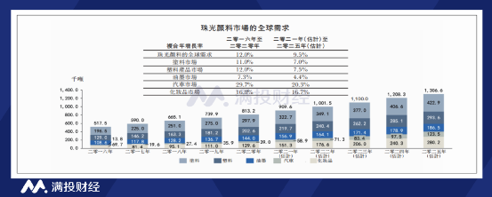从国内市场来看,据招股书所示,中国整个珠光颜料行业在过去几年保持在约24%的复合增速,预计未来仍将保持快速发展,根据弗若斯特沙利文报告指出,预期2021年至2025年的复合年增长率约为30.8%,其中,合成云母基珠光颜料产品预期从2020年占市场份额的15.8%提升至32.6%。