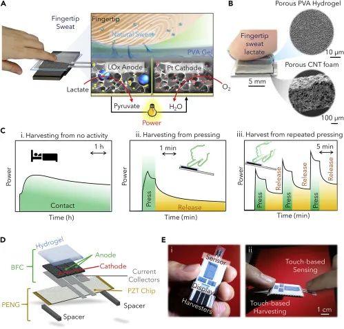 基于触摸的生物燃料电池和生物能量收集系统的操作示意图