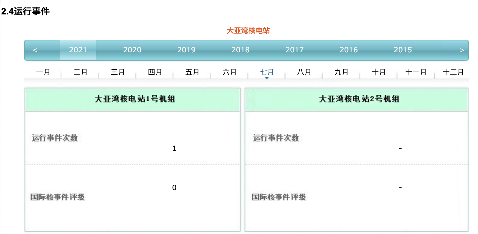 大亚湾核电运营管理有限责任公司官网显示,大亚湾核电站1号机组7月新增记录一次运行事件。