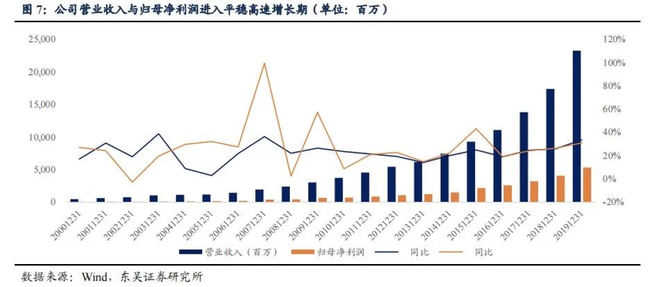 此后十多年,恒瑞相继推出奥沙利铂、多西他赛、伊立替康、培门冬酶、吸入七氟烷等仿制药。至2000年上市,公司已成为国内医药行业的排头兵,年收入4.85亿元,归属净利润0.65亿元。