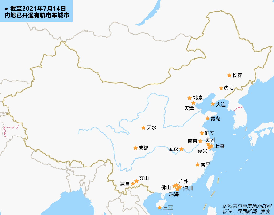 6月25日,浙江嘉兴成为中国最新一个开通有轨电车的城市。5月份,云南文山有轨电车正式投运。去年,甘肃天水和海南三亚有轨电车相继开通。上海、北京、广州、佛山、沈阳、成都、武汉、苏州等地,也在过去三年内开通多条线路。