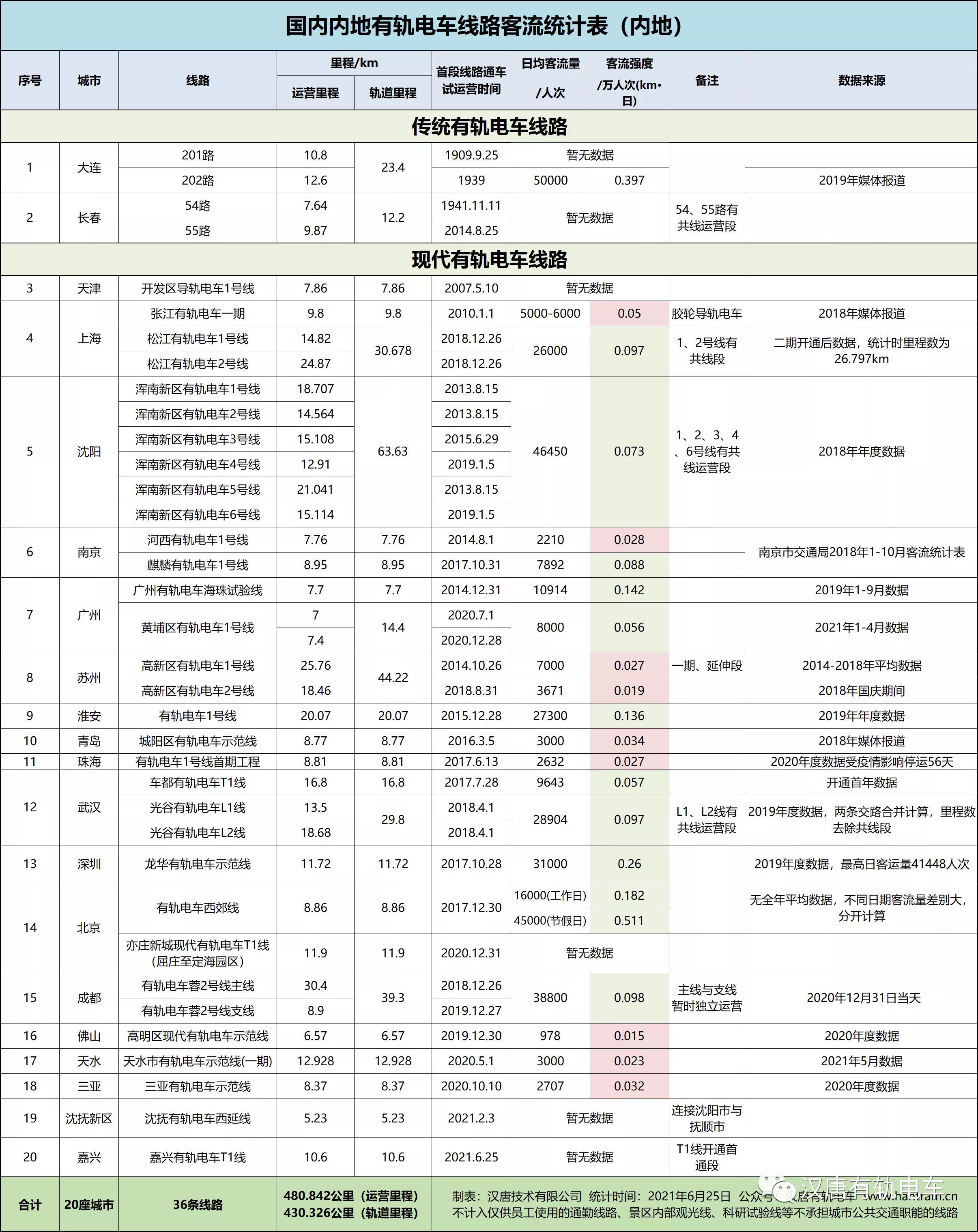 实际上,除了北京、上海、广州、成都、武汉等大城市,其他城市的单条有轨电车线路日均客流基本都小于1万人次。即使上述大城市的有轨电车线路,客流强度也较低。