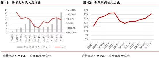 作为山西汾酒的拳头产品,随着汾酒品牌势能不断提升,青花系列各价格带主力产品也将充分受益,同时对于20、30系列不同价格带对应的消费群体也会产生黏性效应,能进一步提高客户忠诚度,这也是青花汾酒与“茅五国”不同的地方。
