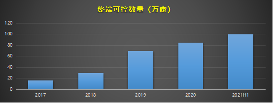 汾酒在采取这种下沉推广模式下,汾酒的终端可控数量呈现爆发式增长状态。从17年16万家增长到21年年中的100万家,渠道的大幅下沉推广也助推了汾酒的业绩增长。