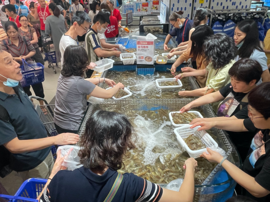 门店面积3500平方米,涵盖了来自全球的8000多款商品,其中包括日日鲜、帝皇鲜、帝王蟹、波士顿龙虾等。门店可以为周边3公里范围内的消费者,提供最快30分钟配送到家的服务。