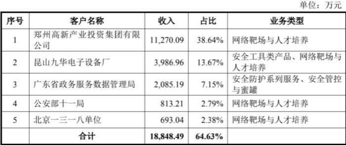 从招股书呈现的情况来看,2018年至2020年,永信至诚的销售前五大客户几乎全购买了“网咯靶场和人才培养”产品,以2020年为例,概念销售前五大客户中,有四人购入该产品,其中三人进购买了该产品,安全管控与蜜罐似乎被大客户忽略。