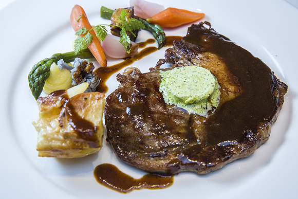 安格斯牛排—牛肝菌批,焗土豆,香草黄油,黑胡椒汁