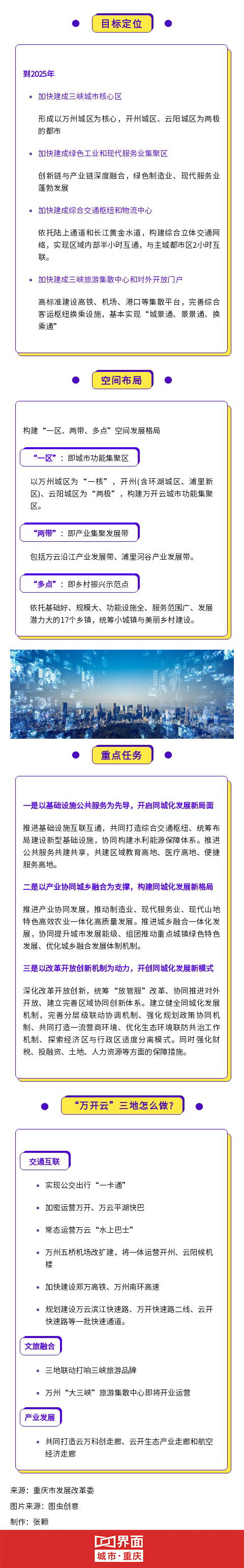 根据《方案》,到2025年,将形成以万州城区为核心,开州城区、云阳城区为两极的初具规模的都市区。同时万开云区域内部将实现半小时互通,与主城都市区2小时互联。