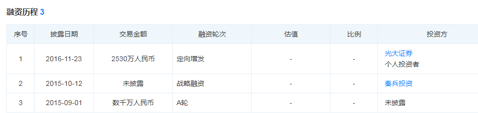 据天眼查显示,见知教育前身森图教育迄今为止共拿到3轮融资,分别是2015年9月1日的A轮融资,融资金额数千万人民币;2015年10月12日由秦兵投资的战略融资;以及2016年由光大证券和个人投资者投资的定向增发融资,金额数为2530万人民币。