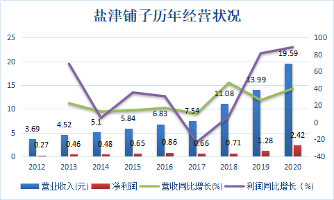 2018年-2020年,盐津铺子营业收入分别为11.08亿元、13.99亿元、19.59亿元,同比增长分别为46.81%、26.34%、39.99%;净利润分别为7051.33万元、1.28亿元、2.42亿元,同比增长分别为7.27%、81.58%、88.83%。