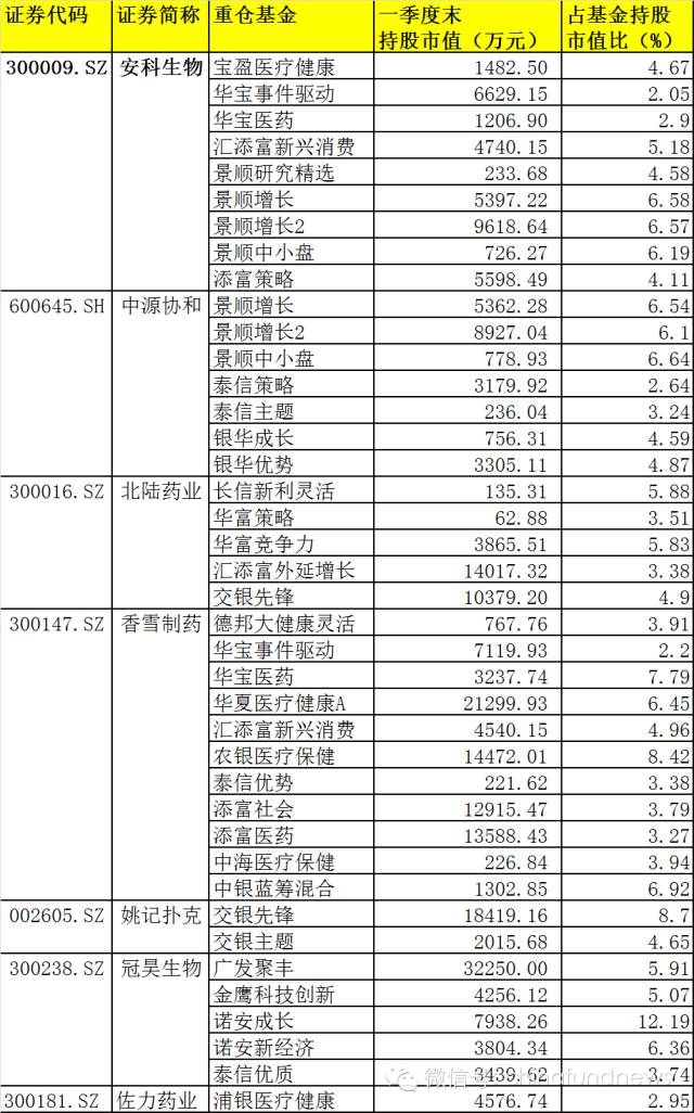 紧接着看看哪些基金在今年一季度末持有这些股票,汇添富旗下6只基金重仓持有,景顺系有7只基金持有这8只股票。但愿不是地雷啊。