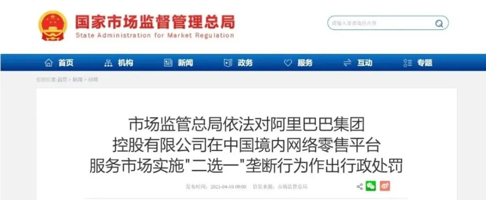 今年4月,阿里因“二选一”等滥用市场支配地位行为,被处以182亿元罚款,并进行全面整改。