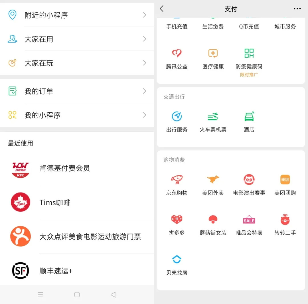 相比之下,九宫格——微信支付页面推荐位——流量倾斜的力度更大,聚集了京东、美团、拼多多、贝壳找房等腾讯投资的企业。如果要挤进九宫格,支付高昂费用在其次,淘宝天猫可能先得让腾讯入股。