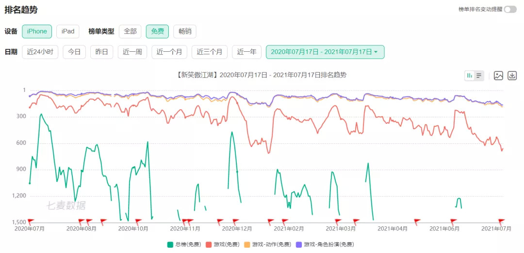 《新笑傲江湖》如今热度惨淡 图源:七麦数据