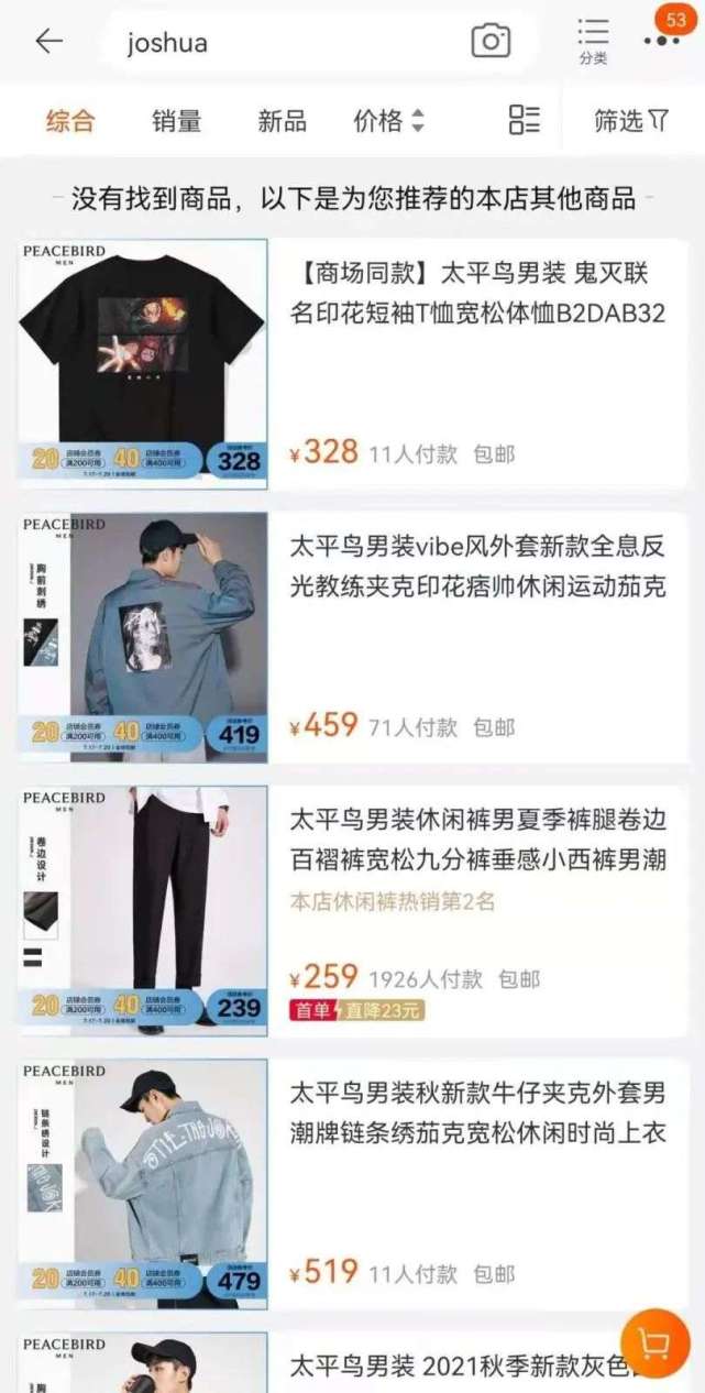 尽管如此,仍有大量网友对于太平鸟的说法不买账。有网友梳理事件称,是太平鸟在2020年11月联系Joshua的工作室购买了三个设计(用于服装),并且Joshua本人再三与太平鸟确认不以本人名字冠名,而是以工作室的名义。结果太平鸟不仅利用这三个“底板”去伪造一系列该风格的设计,还以Joshua本人的名字冠名。