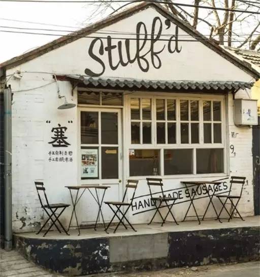 五道营虽说是文艺店铺的聚集地,但是与南锣不同,这里的店总透着那么点不染纤尘的感觉,而Stuff'd塞餐厅则与众不同,不声不响地接着地气儿,开在箭厂胡同里。与其说Stuff'd是一家酒吧,不如称之为饕餮之家,因为这里经营的各式肉肠、肉类派、热狗、Pizza等往里面“塞”馅儿的食物都是远近闻名的好吃。