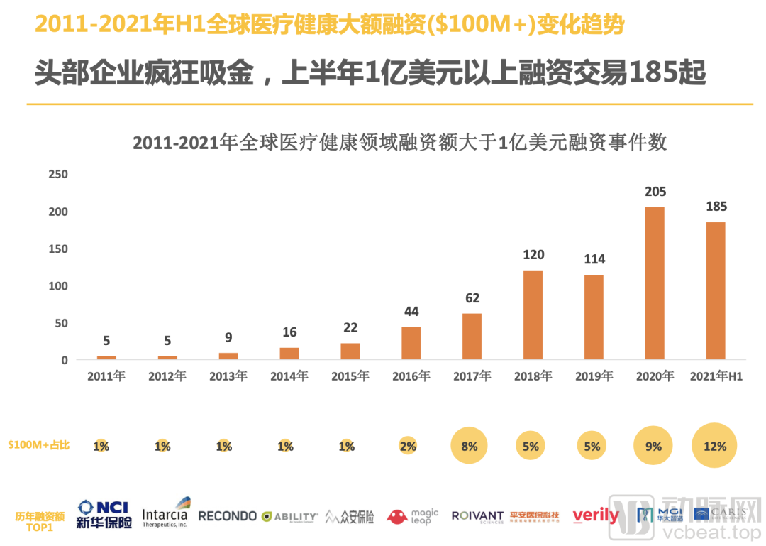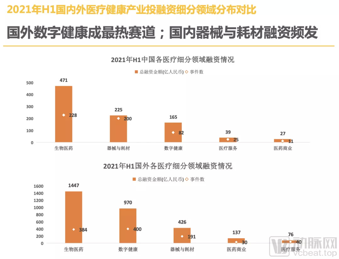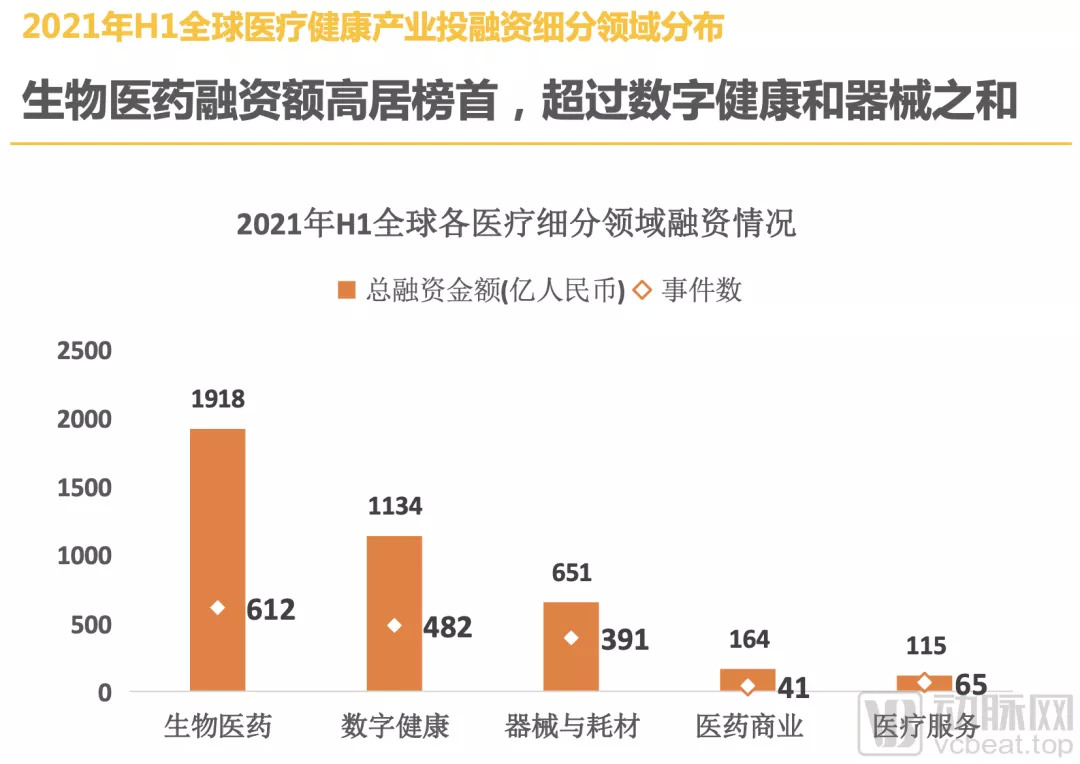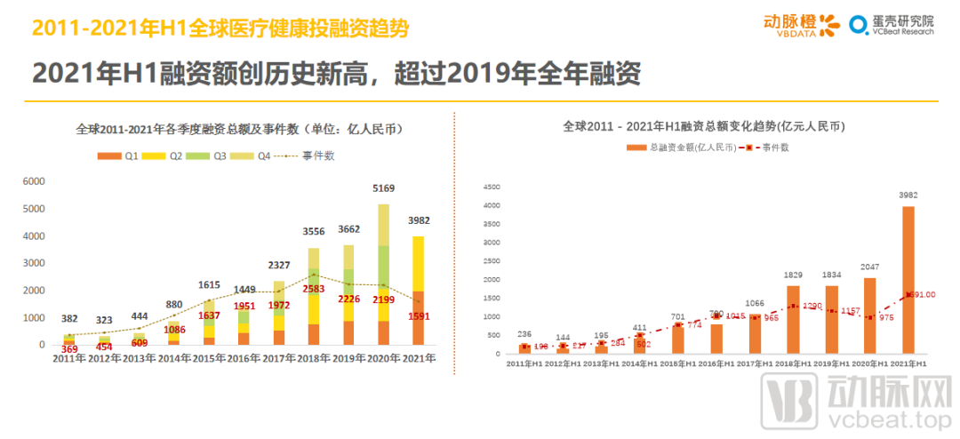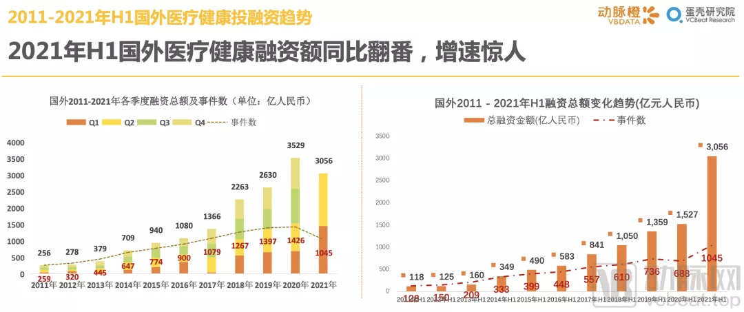 1.32021年H1国外医疗健康融资额同比翻番,增速惊人
