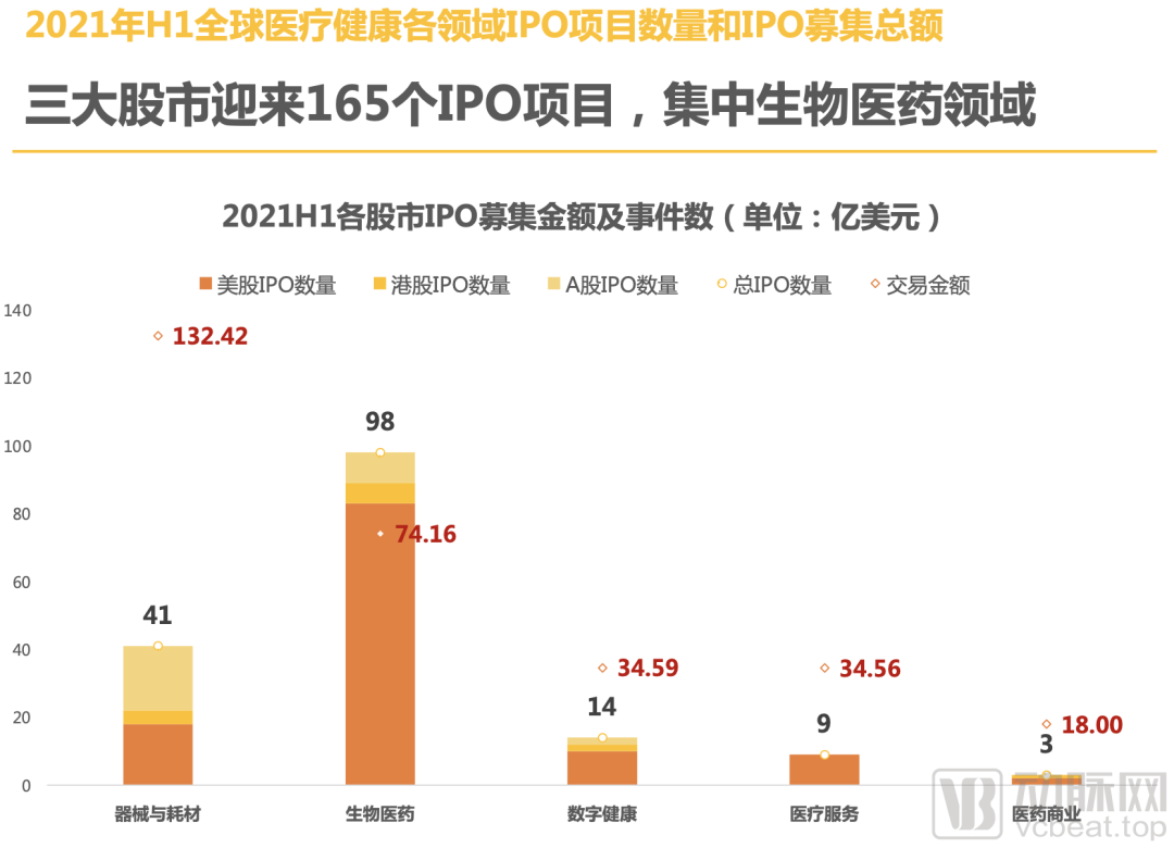 七、三大股市迎来165个IPO项目,集中生物医药领域;中国上半年48家医疗健康公司IPO,数量再创新高