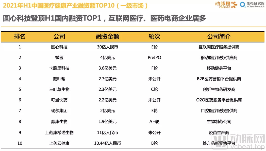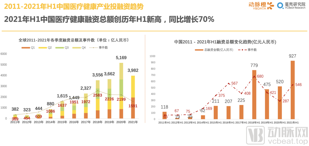 1.42021年H1中国医疗健康融资总额创历年H1新高,同比增长70%