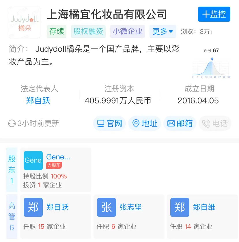 今日(7月18日),《化妆品财经在线》获悉,国货彩妆品牌JudydoLL橘朵的关联公司上海橘宜化妆品有限公司发生股权变动,大股东由创始人郑自跃变为General Atlantic Singapore JD Pte.Ltd.(泛大西洋资本)。