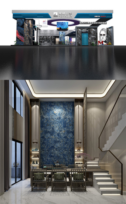 蒙娜丽莎本次展会将会带来新品——新梦幻蓝宝(180-360DBP12806M),这款3.6米陶瓷大板强耐磨、低辐射、低吸水率,高硬度,防滑,其典雅庄重的蓝色,明暗有致,色泽柔和、内敛,拥有天生的贵族气质,氤氲着优雅与摩登,加上细碎的金色点缀,浪漫、梦幻的气息扑面而来,是空间中绝对的颜值担当。