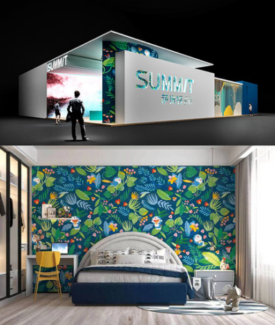 本次展会,萨米特与哆啦A梦跨界合作,引入哆啦A梦的二次元元素,以时空旅行的空间设计理念,打造了一座集创意、趣味,以及新材料设计与应用于一体的岩板大家居主题馆。入口处的时空隧道以想象力无限的巨幅影像和弧形创意主题造景引人入胜,又为观展者提供一个包容、分流进入的空间型式。穿越不设限的任意门,在哆啦A梦的神奇魔法世界,呈现的是岩板精加工的魔力。展位的中心区域则是萨米特打造的未来潮流岩板家居,以活力、年轻、时尚的设计思维与材料应用,满足即将成为消费主力的Z世代的生活追求。