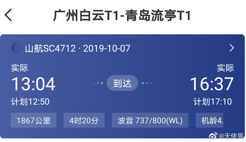 记者还注意到,因为这次的话题讨论,许多旅客晒出以往乘坐山航航班的行程截图,截图显示,哪怕比计划时间晚起飞,航班也可以做到提前约半小时到达。