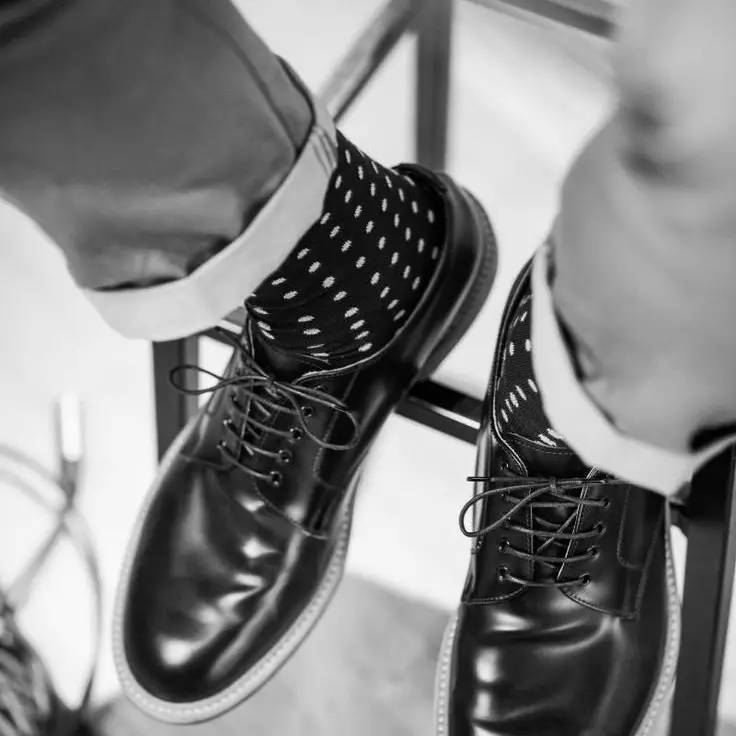 所以,如何在袜子上面不出错呢?记住这4点:1、穿皮鞋一定不要穿白袜子or大红袜子2、你可以选择彩色的袜子穿,如蓝色、绿色、黄色、暗红色等3、袜子上面有一些图案或者线条也是很好的4、袜子要么短到穿鞋露不出来,要么就长到在穿长裤的情况下不会露出肉的程度。