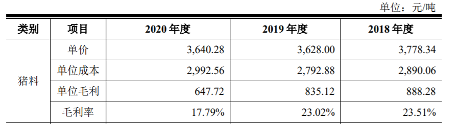 也就是说,2020年猪料收入猛增的背后仅仅是因为提高了产品销售数量,而公司并没有在生猪价格上涨所带来的猪料上涨时相应提高单位毛利。